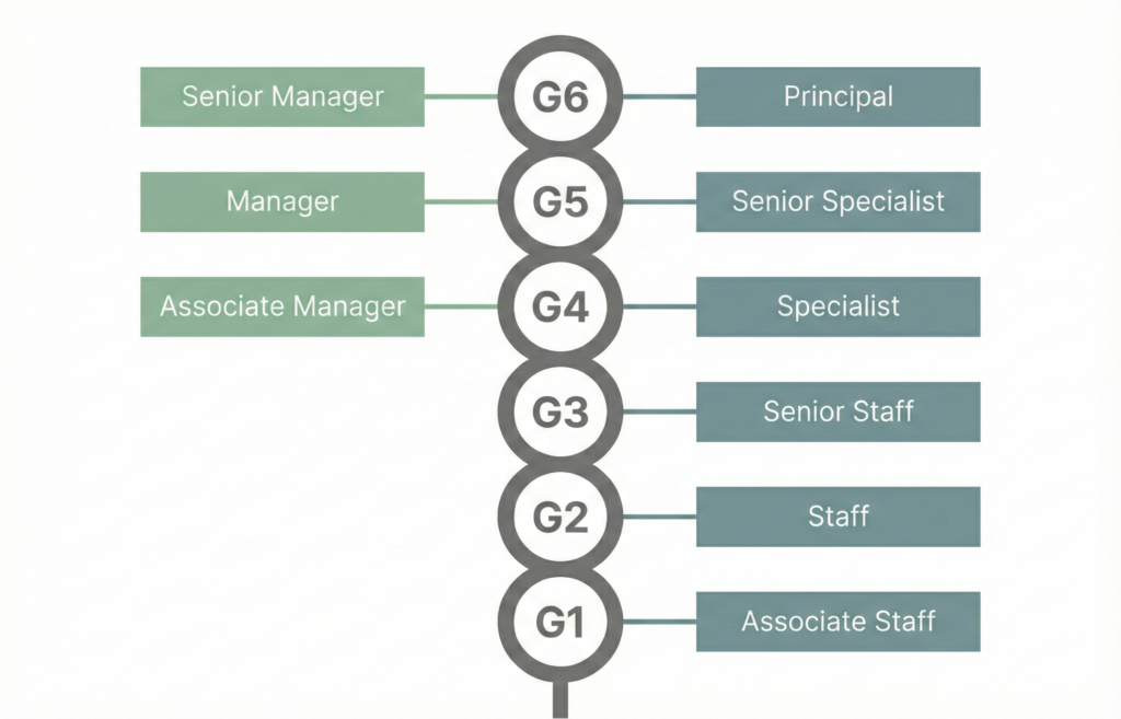 - G4–G6:自主思考 × 獨立規劃 × 主導專案與跨部門合作